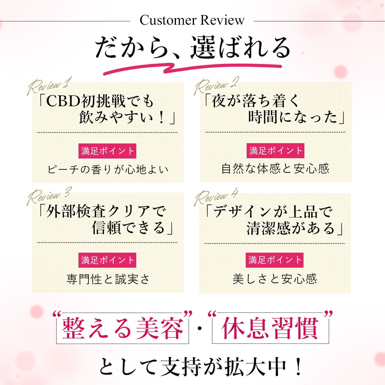 CBDの最適な使用量は個人によって異なります。目安量を参考にして少しずつ増減しながらご自身の適量を見つけてください。