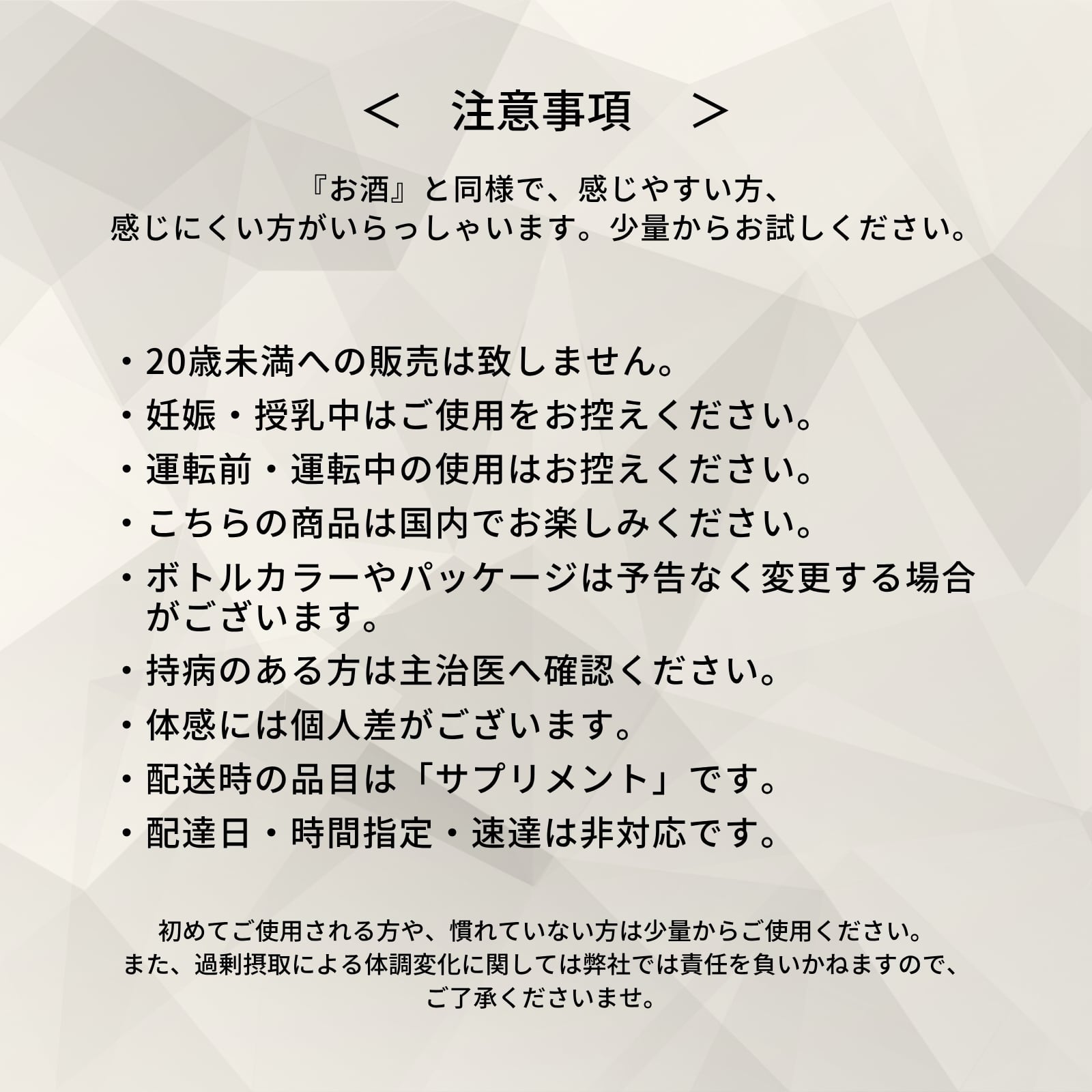 ・運転前、運転中のご使用は必ずお控えください。また、お酒や薬などとの併用や一度に大量摂取することはお控えください。