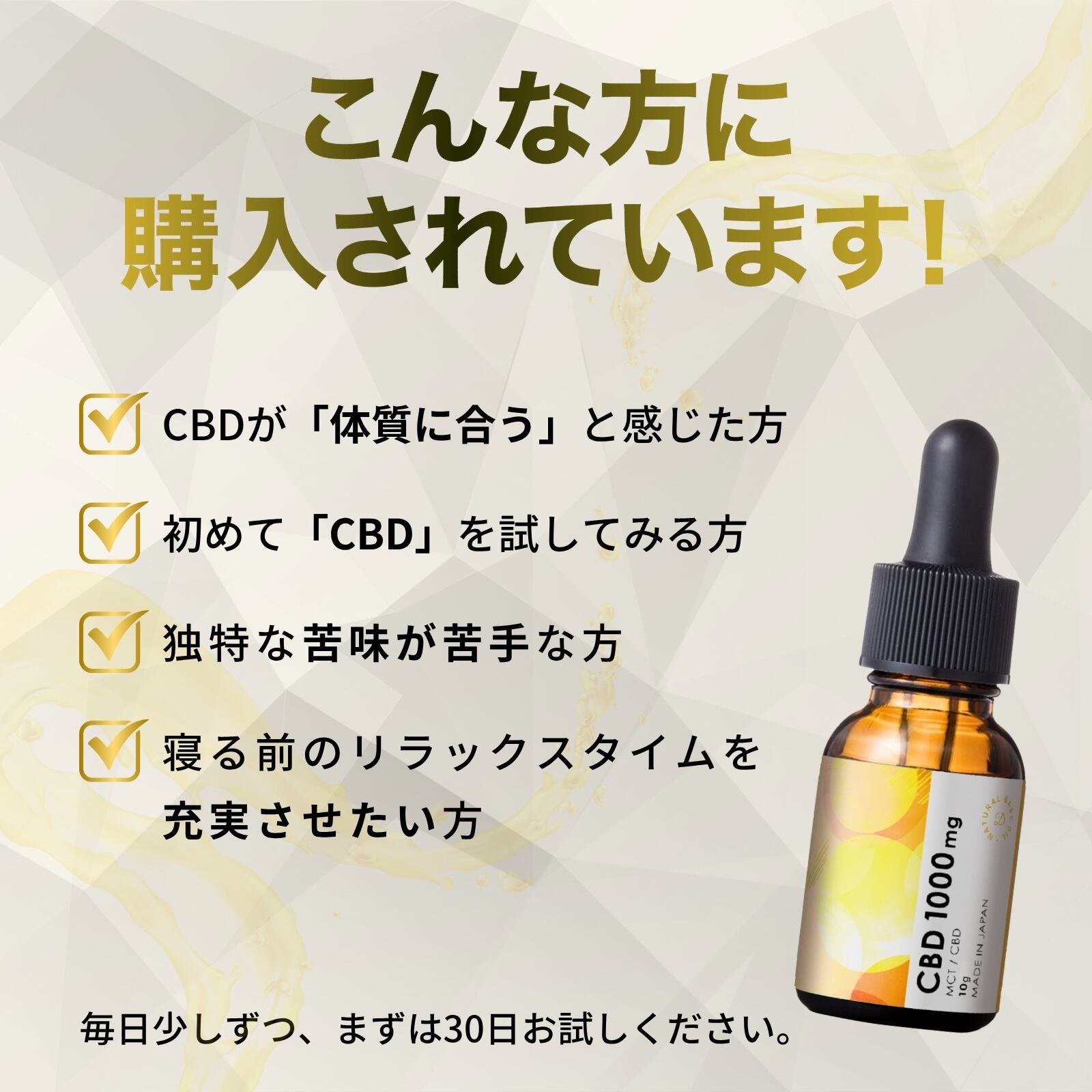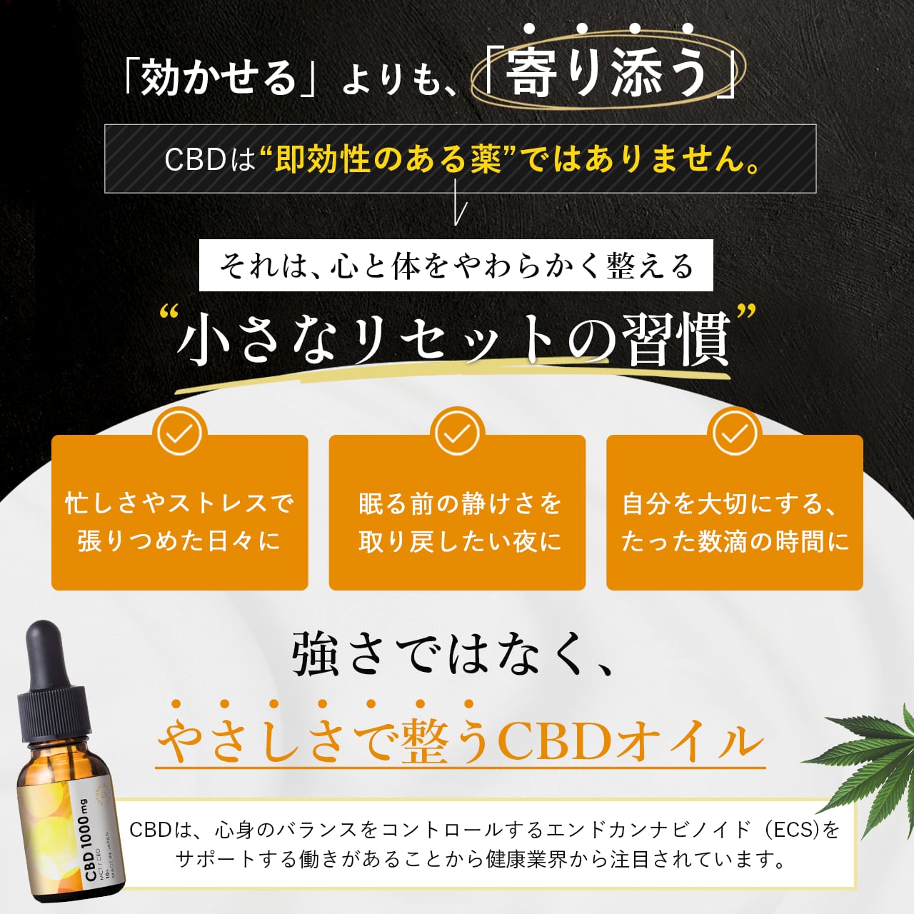 CBDの最適な使用量は個人によって異なります。目安量を参考にして少しずつ増減しながらご自身の適量を見つけてください。