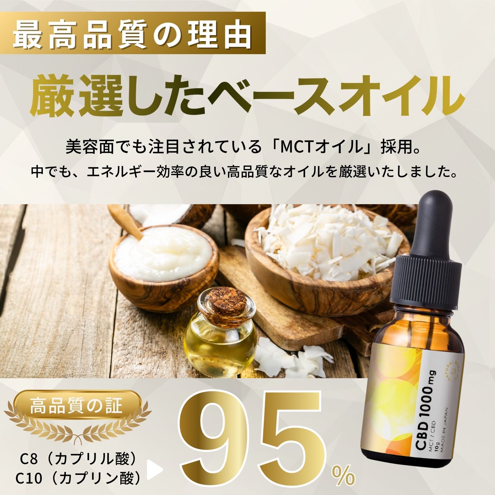 原材料名: 中鎖脂肪酸油(MCTオイル/マレーシア製造)、麻抽出物(カンナビジオール)香料(オレンジ由来/ハッカ由来)